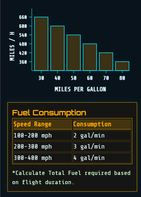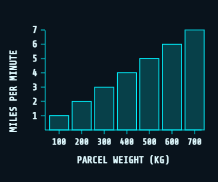 Speed values need to be converted after tallying the provided information with either the the “Speed and Fuel Consumption“ or "Speed & Parcel Weight" sections in the left-hand menu. The values are displayed as a bar graph, with each leg or waypoint assigned a figure. Similar to reading a simple column chart, you match the checkpoint label to its bar height to get the value. When a route crosses multiple legs, check whether speed changes between them before calculating.