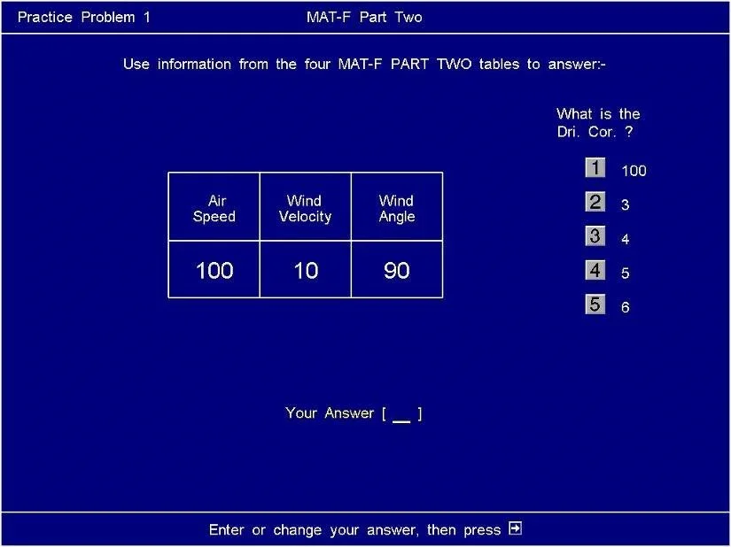 The Table Reading Test (MATF) gives you a physical reference sheet and a screen displaying numerical inputs, and your task is to locate values using table lookup across two distinct parts, each with its own grid structure and cross-reference logic.